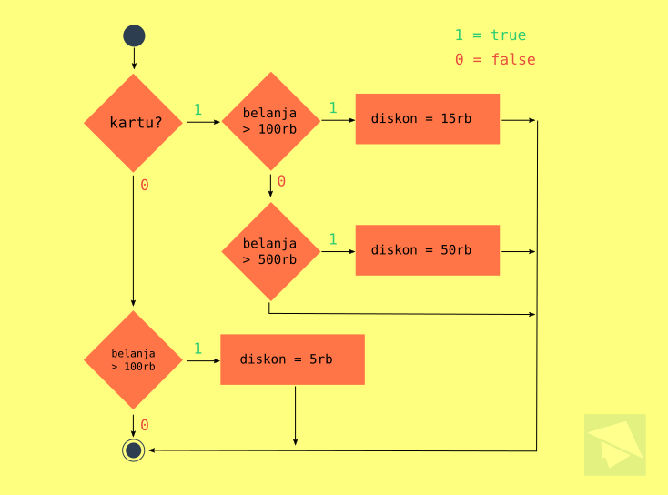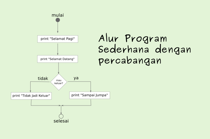 Nah! Contoh kasus seperti itu, dapat kita selesaikan dengan menggunakan percabangan ini.