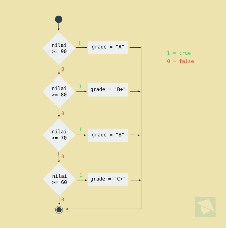 suatu_kondisi hanya bernilai true/false saja. Kita bisa gunakan operator relasi dan logika di sini.