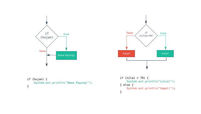 Sebelumnya, kamu perlu tahu dulu tiga bentuk percabangan pada Java: