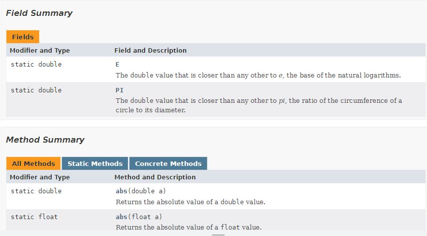 Membaca dokumentasi adalah hal penting yang perlu dibiasakan bagi seseorang yang belajar pemrograman. Dokumentasi yang baik memiliki standar penulisan yang konsisten, sehingga memudahkan kita untuk mempelajarinya. Tapi, meskipun demikian perlu latihan dan pembiasaan diri untuk kita bisa membaca dokumentasi secara efektif. Mari kita check dokumentasi package Math, dari sumber resmi developer Java, Java Platform SE 8 - Math.